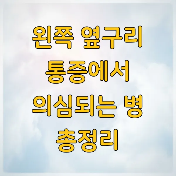 왼쪽 옆구리 통증은 생각보다 다양한 원인으로 발생할 수 있어요. 혹시 모를 질환들을 미리 알아보고 건강을 챙겨보자구요!