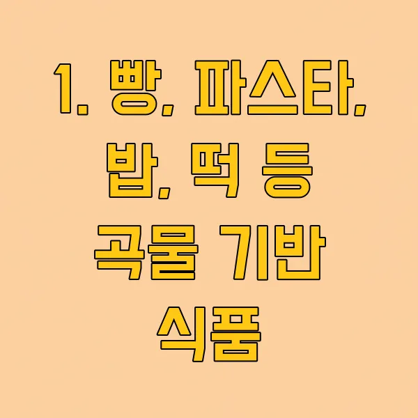1. 빵, 파스타, 밥, 떡 등 곡물 기반 식품